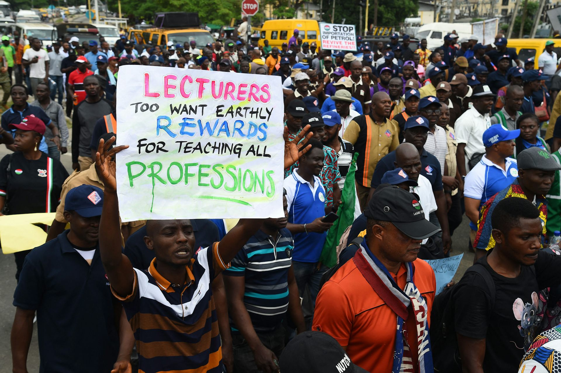 Поскольку водное транспортное сообщение все еще в значительной степени неразвито, а сеть легкорельсового транспорта все еще находится в стадии строительства, жители Лагоса в своей повседневной жизни сильно зависят от дорог.