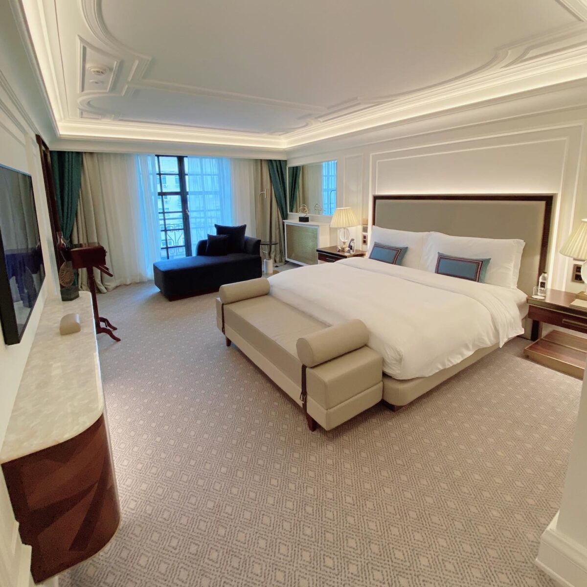 Выберите номер Делюкс с видом на исторический центр города, или выберите люкс или представительский номер, чтобы получить улучшенные удобства и доступ в представительский лаундж с бесплатным завтраком и напитками, которые, как сообщается, довольно обширны, и в обоих отелях больше, чем вы можете съесть. утром и вечером. Сам холл формальный и классический, как и другие общественные помещения в отеле.